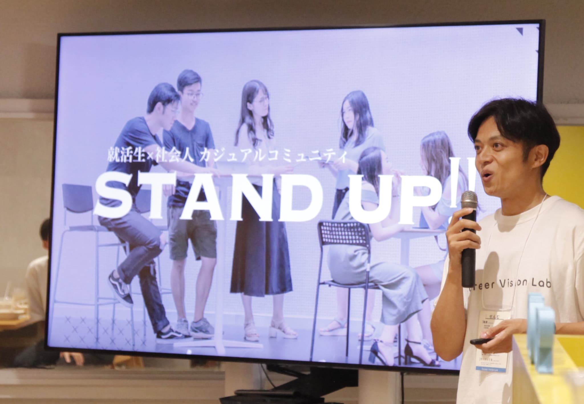 「ツマラナイ就活を、オモシロく。」をスローガンに、従来の堅苦しい就職活動とは異なるアプローチを特徴. 就活生×社会人 カジュアルコミュニティ 'STAND UP!!'